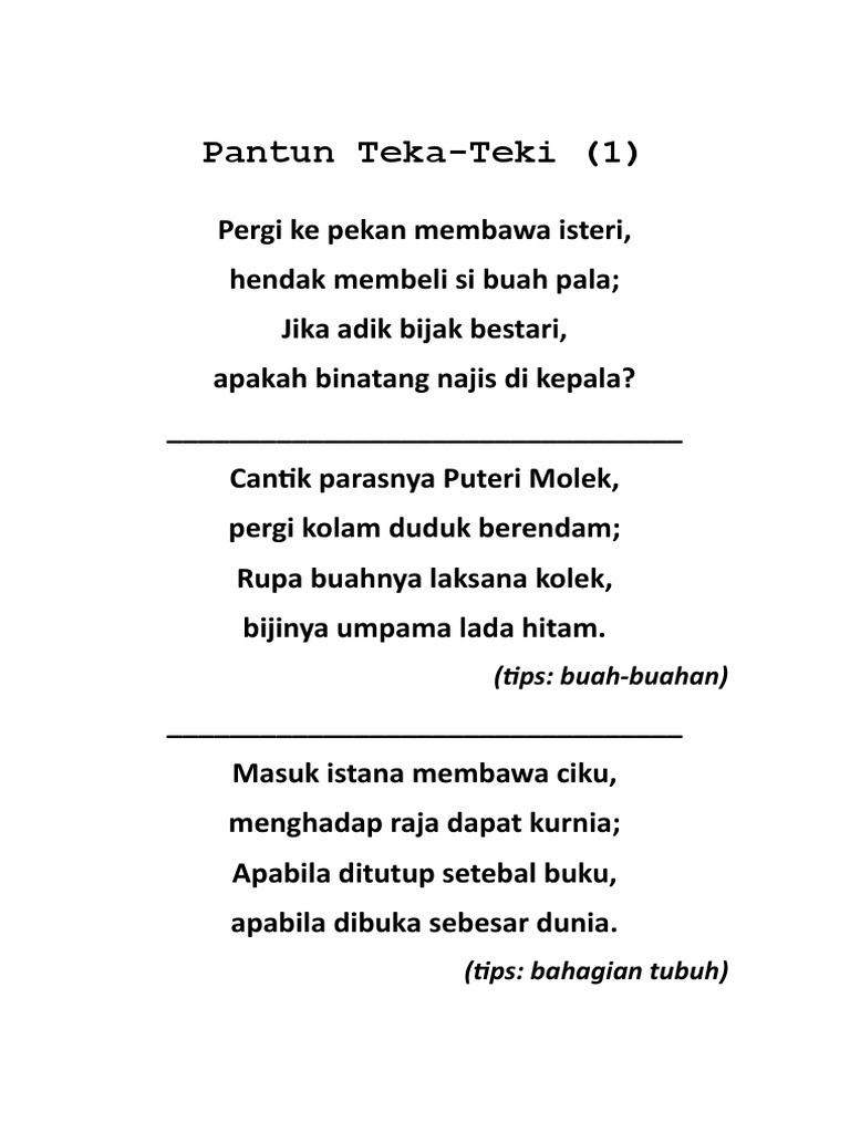 Pantun Teka Teki Dan Jawabannya Pdf